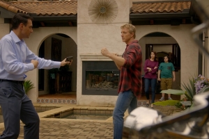 When Daniel’s car dealership billboard is sprayed with lewd graffiti, it consumes Daniel and escalates tensions against a rival. Robby, Johnny’s delinquent son, is embarrassed about his father and his new dojo. The bullying escalates against Miguel and motivates Johnny in a surprising way.