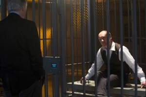Anslo Garrick, the newest person on the blacklist, tries to capture Red; Liz is caught in an elevator.