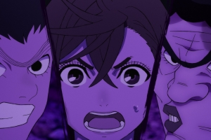 The sky darkens as Momo, Okarun and Kinta try to evade the giant space monster. They soon run into Aira and Jiji, who give them some much-needed help.