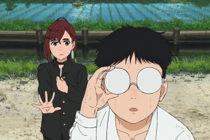 As Momo and the others try to pilot the giant Buddha robot and battle the kaiju, Okarun and Jiji are ejected from the robot and land in a rice paddy.
