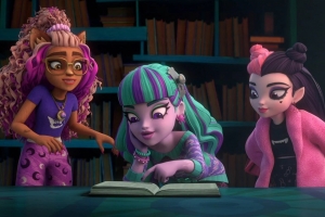Draculaura, Clawdeen and Frankie meet Twyla, a boogey monster, while having a sleepover in the library.